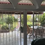Ferestrele de la această cazare din Marmaris au vedere spre grădină.